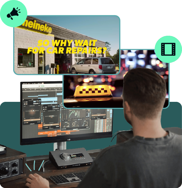 Music isn't the only sonic bottleneck. That's why we can also create powerful sound design so your team of video professionals doesn't waste time sourcing audio assets, placing them, and layering sounds for every project.